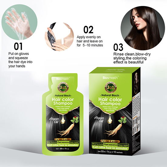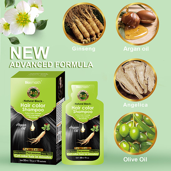 Biosmooth dye shampoo and conditioner 3 in 1 natural black hair shampoo for man and woman