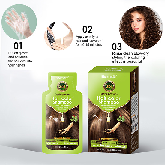 Grey coverage long lasting natural looking dark brown hair shampoo for man and woman