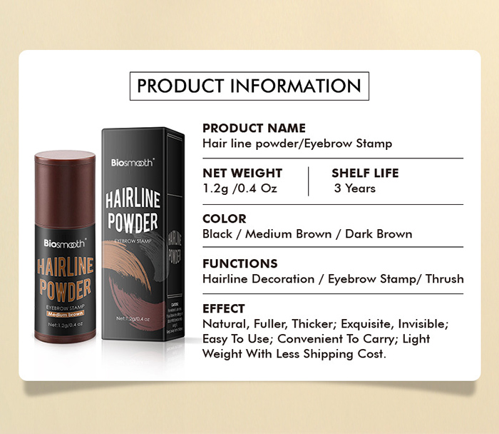 Function: Instant cover hair line, Get Thicker, bring you Fuller Looking Hair In Seconds1 PRODUCT 2 Different usage: for hair line and eyebrow